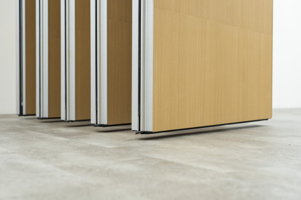 Moving Nose Element: One panel features a moving nose element with a 125 mm travel, manually operated to facilitate final closure and easy stacking of the partition.